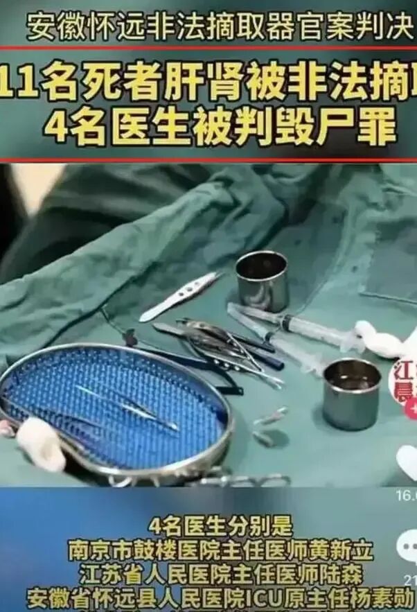 另有安徽非法摘取器官一案,这些个白衣天使们,在阳光之下干着泯灭人性违法的事。