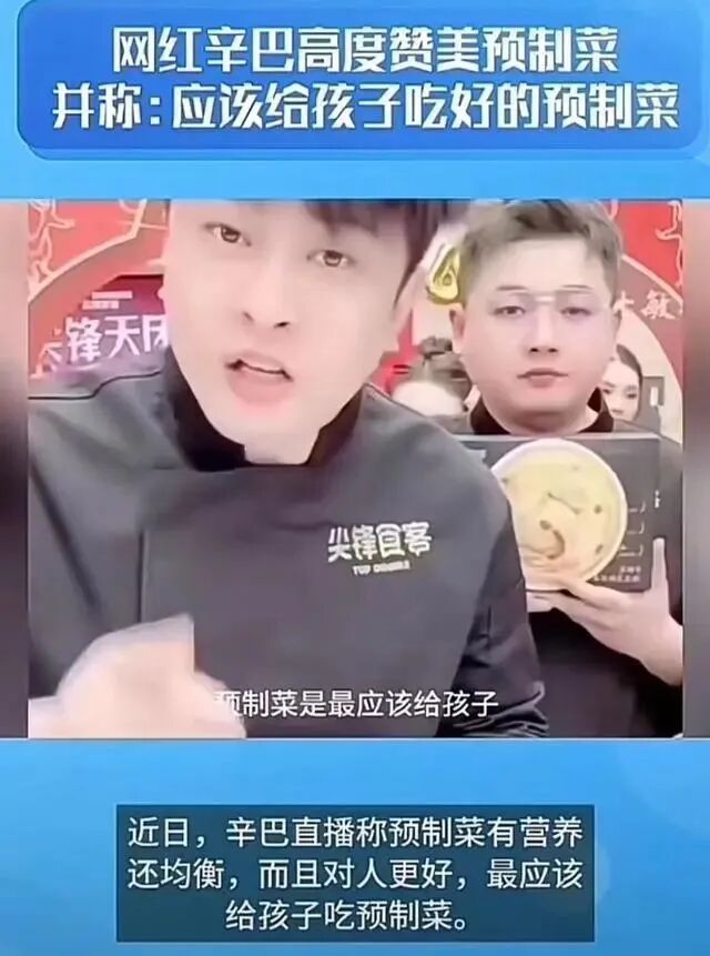 当辛巴信誓旦旦说道孩子应该吃预制菜时,引起无数为人父母发自心底的抵触,认为辛巴为了赚钱不择手段,违背良心。