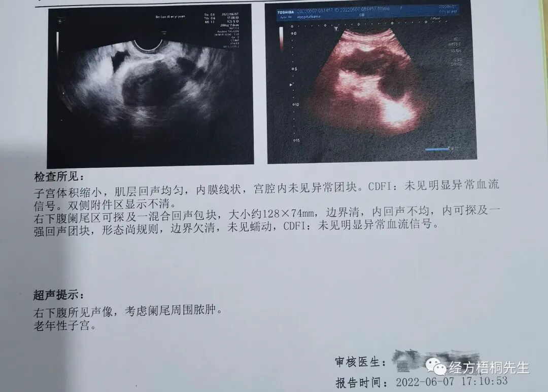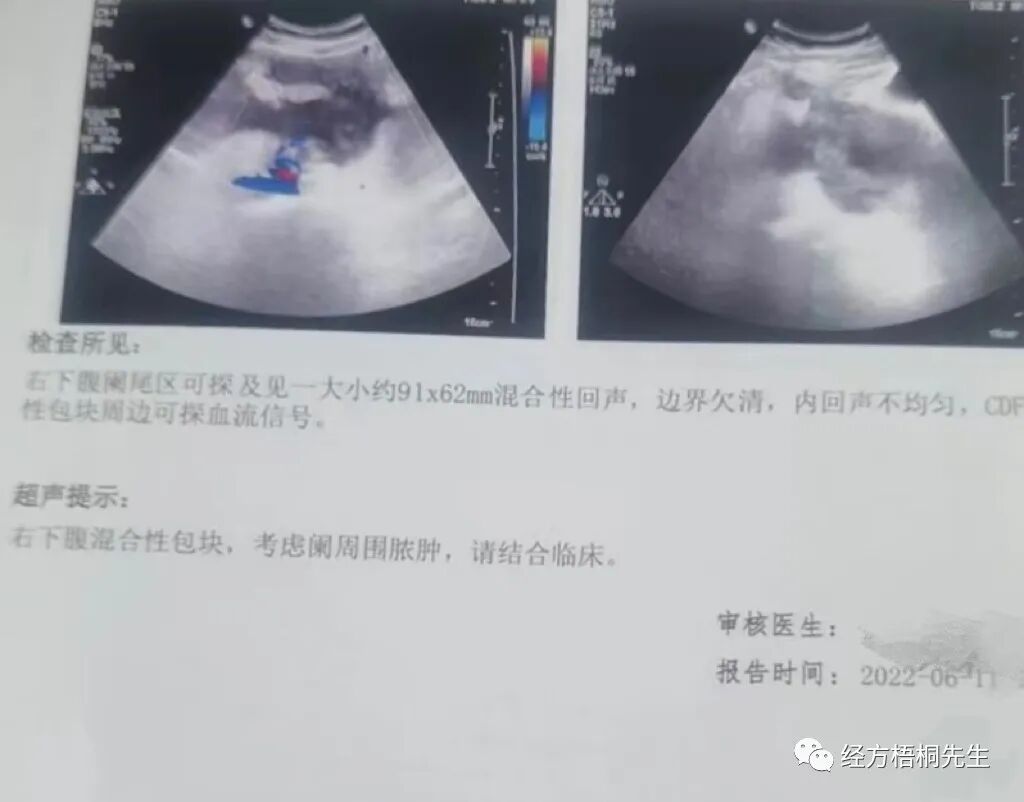 由于患者家属的坚持住院,我有幸观测了一个阑尾脓肿的缩小。