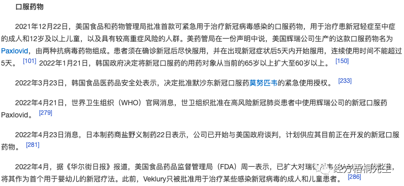 百度百科的条目为新型冠状病毒肺炎,关注的是疫苗,关注的是“新冠特效药”,关注“口服药物”,比如: