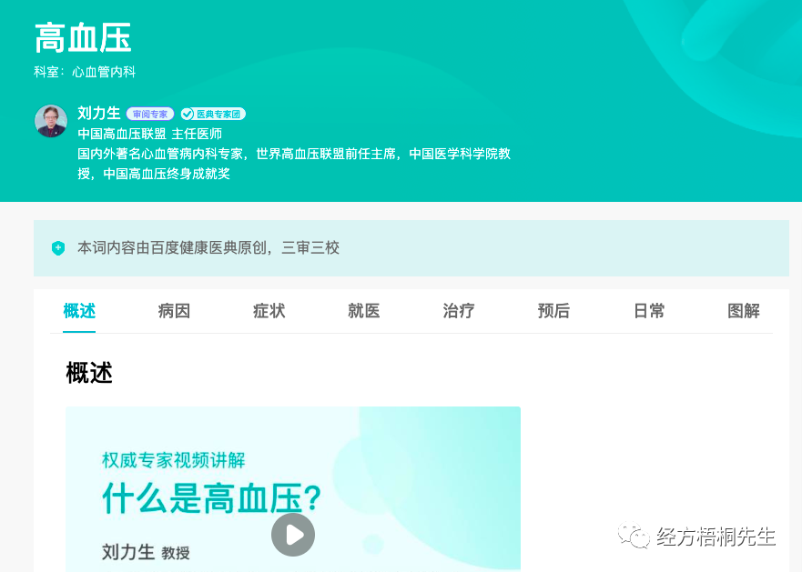 当然不止百度百科,前置的还有百度医典。看起来是这样的: