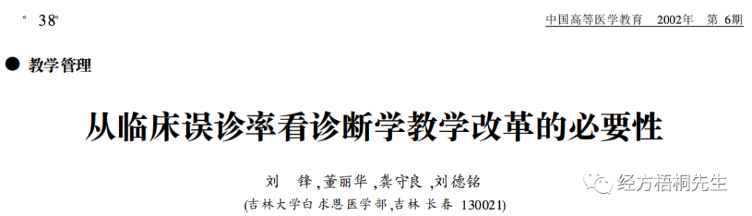 《从临床误诊率看诊断学教学改革的必要性》发表在中国高等医学教育2002年第六期。