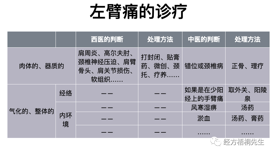 也就是一个外科的诊疗,包含肉体的、器质性的判断,也包含气化的、整体的判断。如果缺乏了气化的、整体的一半,那么可能就会有问题。