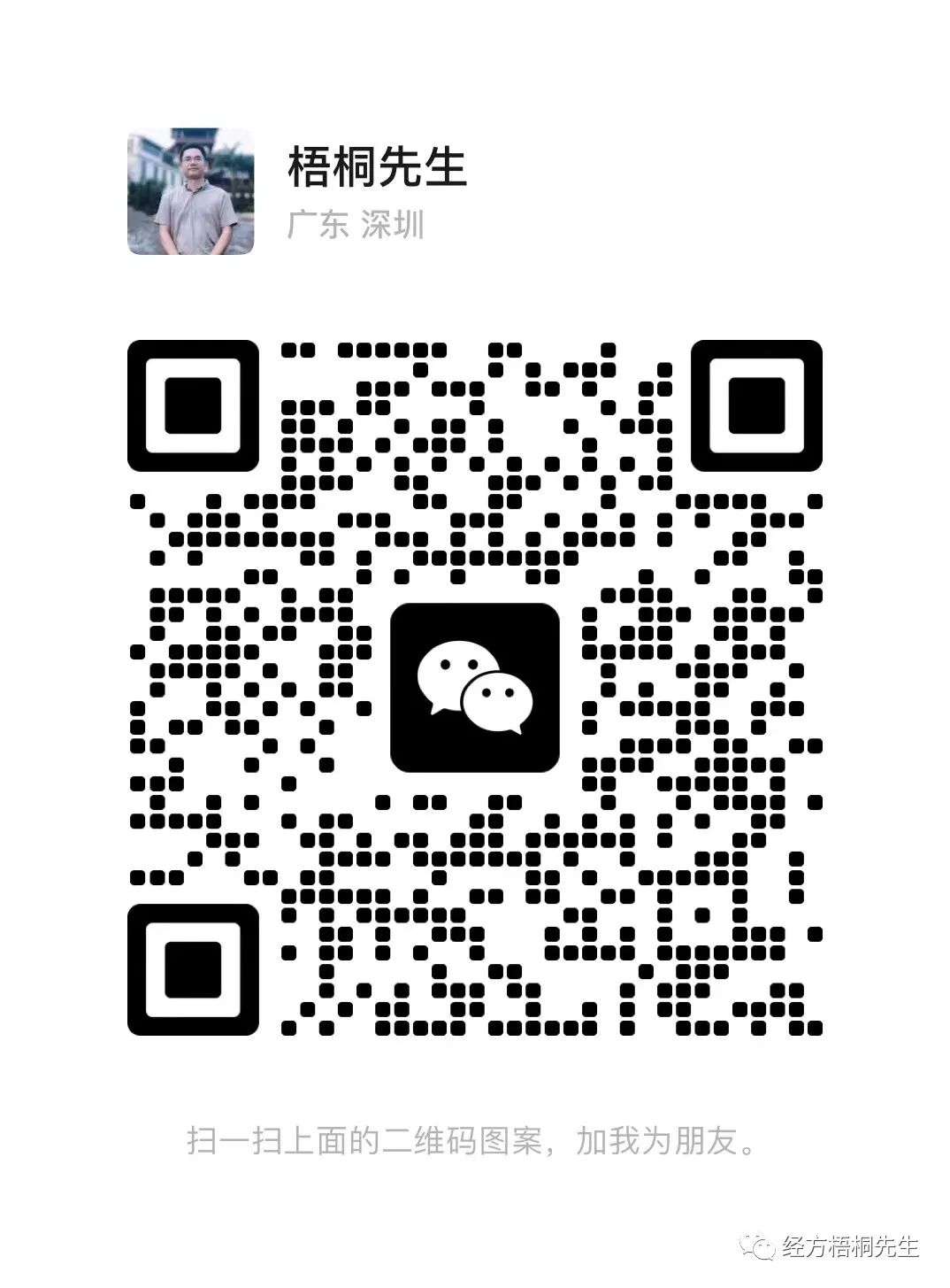 本号所有方子、方法,仅是学术交流。请务必在专业人士指导下使用,后果自负。关注公众号回复 梧桐先生 即可获得《中医的观念》电子书。联系梧桐先生,扫一扫: