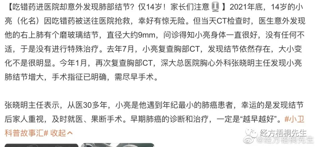 1,到底是什么导致的肺结节,恐怕不是媒体一句话就能说清楚的吧?吃错药发现有肺结节,那就是并存事件,不一定是一吃就长出来,要有常识。比如之前如果有过输液之类的,可能液体有塑料微粒污染;又比如空气污染。