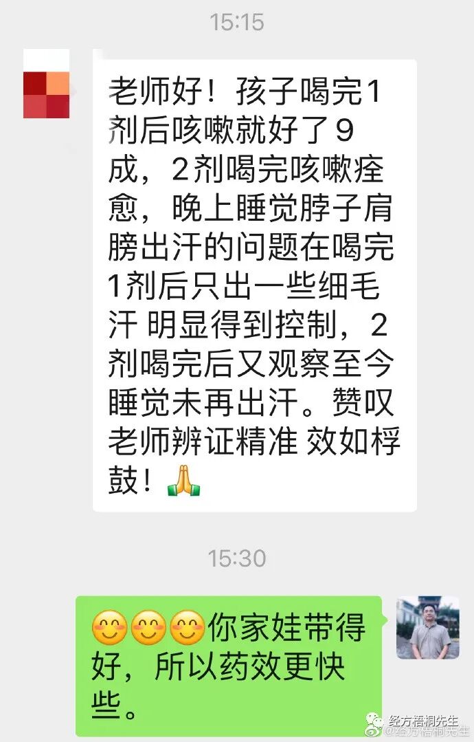 咳嗽,能好这么快和干脆,本身孩子带得好,体质不错。 反过来讲,如果一剂下去没好,甚至出现变证,那就是平素有积累了。比如发烧好了,咳嗽,肺中有寒气;下利,肠胃有寒气……等等。