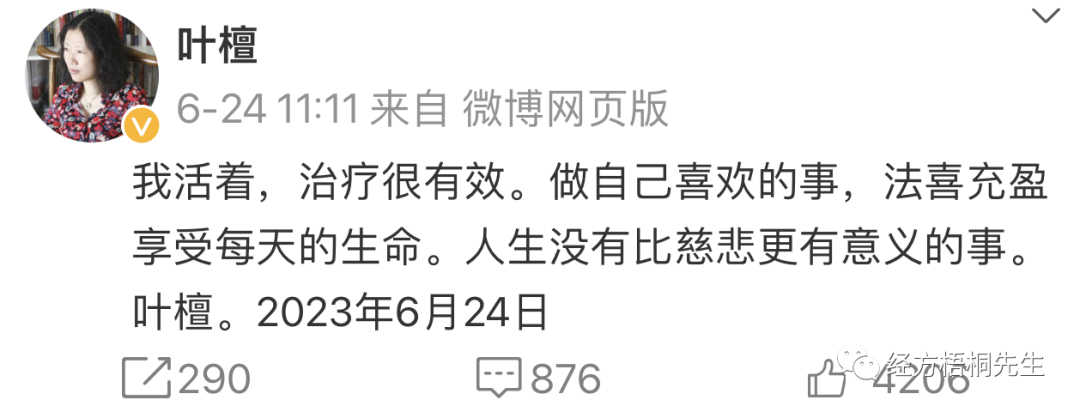 对癌细胞片面的有效,但是对人体有害,这才是叶檀女士治疗的实质。