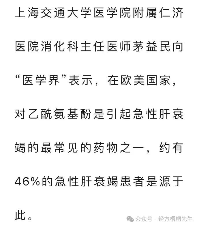 对乙酰氨基酚是引起急性肝衰竭的最常见的药物之一,约有46%的急性肝衰竭患者是源于此