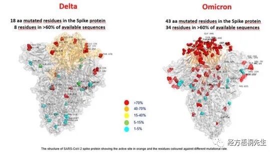 还真别说,画的图还挺精致。转引自新浪,delta病毒和南非新变异病毒的对比图: