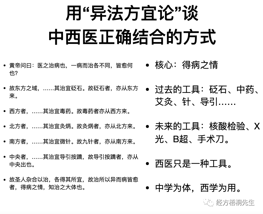 当然,我在给朋友讲述为何中西医要并重的时候,我的讲述的方法,是这样的。