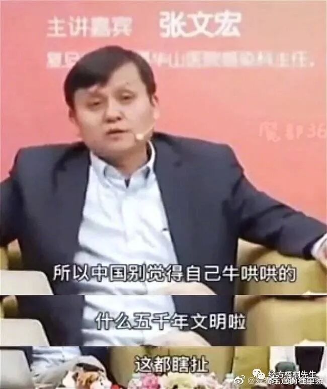 比如张文宏就是他们最爱?而张文宏一开口,上帝就发笑:“中国别觉得自己牛哄哄的,什么五千年的文明啦,这都瞎扯。”