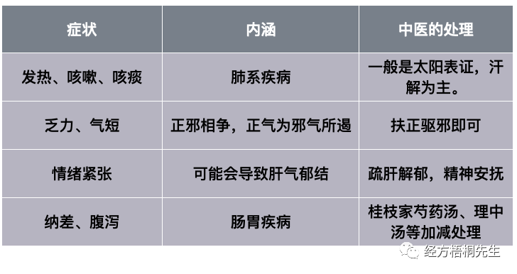 这也是“特效药”宣扬的一个治疗过程。但是中医的治疗显然不是这样的,除了包括以上的,我们的治疗手段主要是六经辨证,主要治疗的目标是着眼人体的阴阳平衡。细分起来,则是: