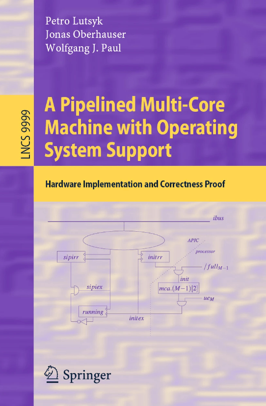 在德国萨尔大学做博士后期间,我与我的导师 Paul Wolfgang教授(德国最高科研奖莱布尼茨奖获得者,欧洲科学院院士)一起撰写过一本书,名为A Pipelined Multi-Core Machine with Operating System Support(《支持操作系统的流水线化多核CPU的设计与形式验证》),这本书详细描述了用形式化方法来构建经过数学证明的多核CPU的方法。