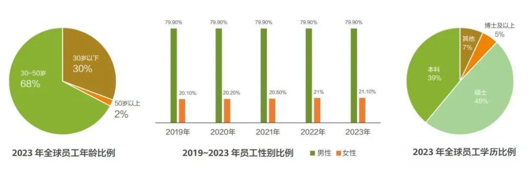 事实上,华为员工中35岁以上50岁以下的员工占比更大。据统计,华为70%以上的员工都是30岁以上的“老员工”。