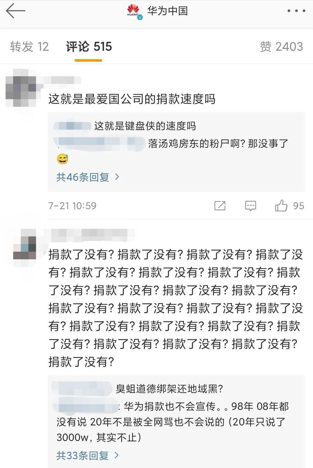 2021年河南洪灾,华为又一次被网喷不捐款不援助。