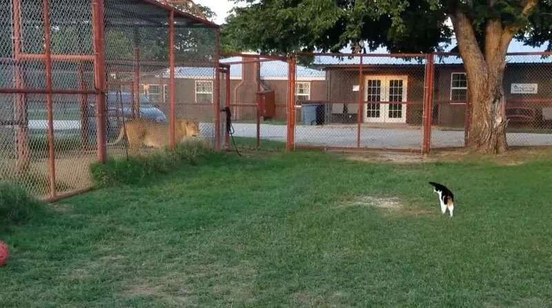 虽然我们都喜欢称号狮子为比较大的猫,可是这种大猫可是非常危险的生物,没事的话我们也不会去招惹它们。可是这只超中二的家猫,竟然勇敢的对笼子内的母狮子做出各种挑衅的动作,让主人在一旁哭笑不得只能无奈的看着他顽皮!