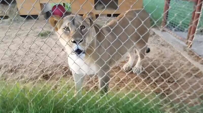 原来当天主人带着Baggy到一家动物收容所内观摩,当Baggy发现笼子内有一只母狮子时,竟然不要命的冲上去对它挑衅,让主人只能哭笑不得的在一旁观摩Baggy的行为。