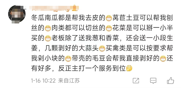 江浙沪网友说,如果您来这逛菜市场,下面这12条服务基本都有: