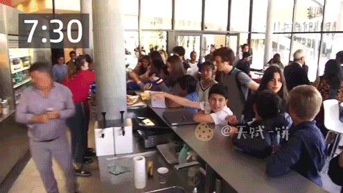 孩子们最晚7:30到餐厅吃饭,如果晚于这个点,会被惩罚去操场跑圈。