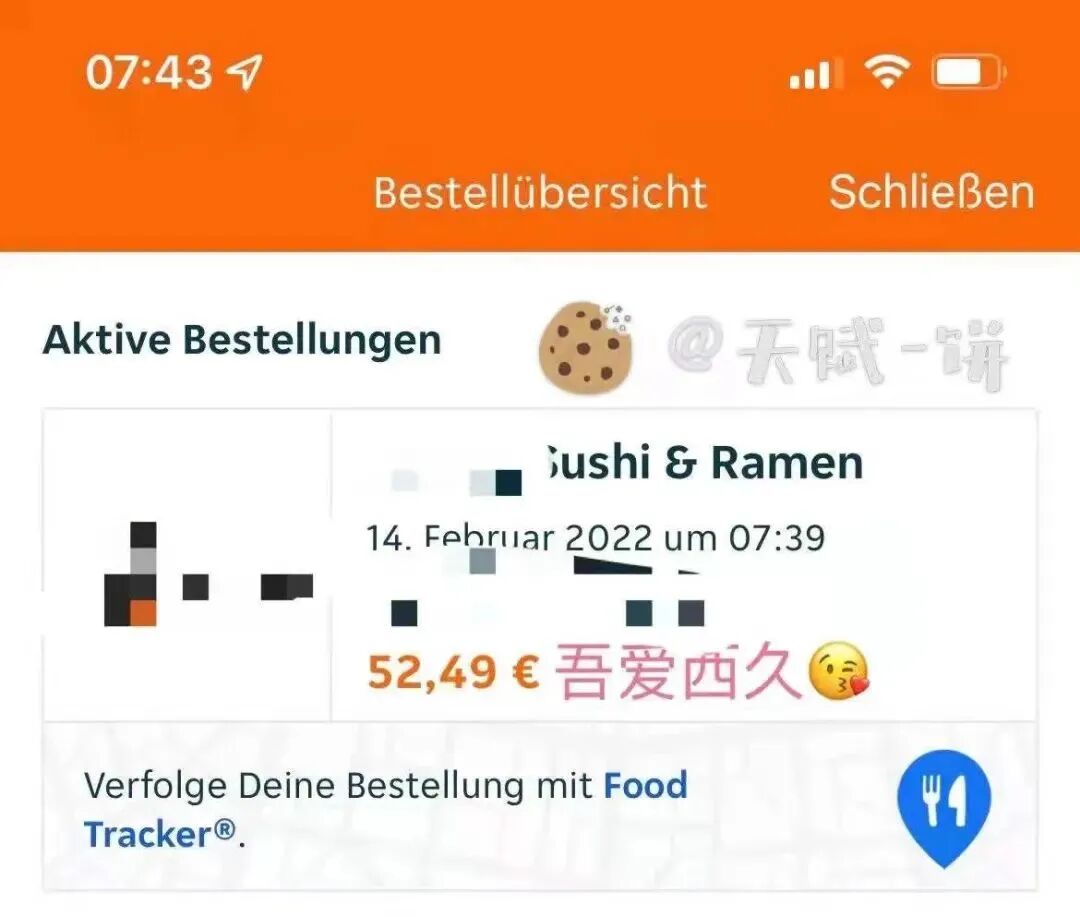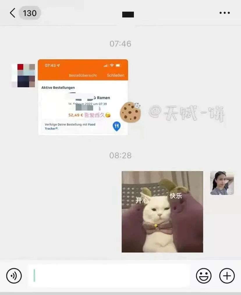 今天早上,他又给我发了一个日料餐厅的外卖订单截图。