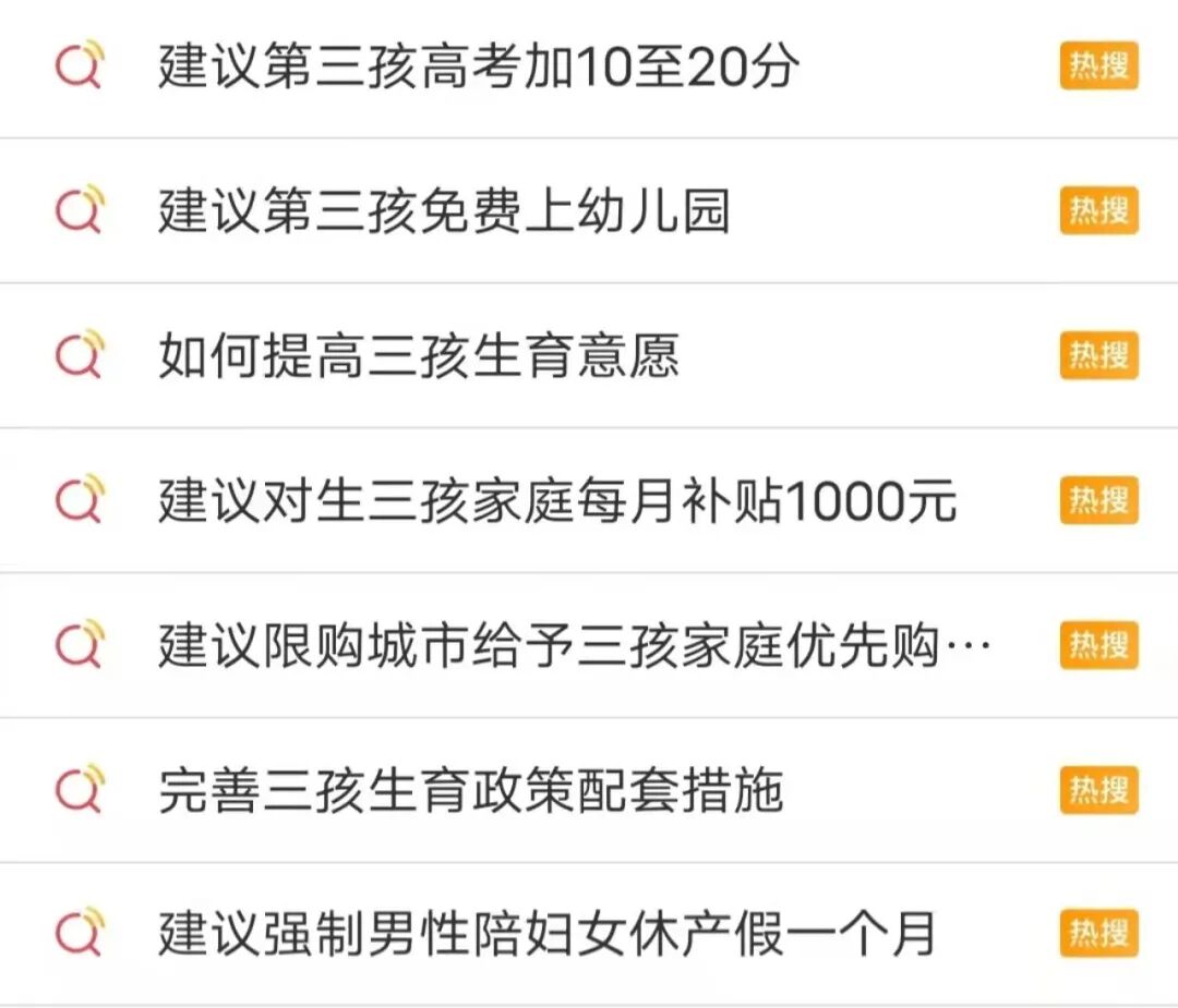 点开这些关于“补贴三孩”的提案和民调,你都会发现一个括号,补贴期限是三年,反括号。