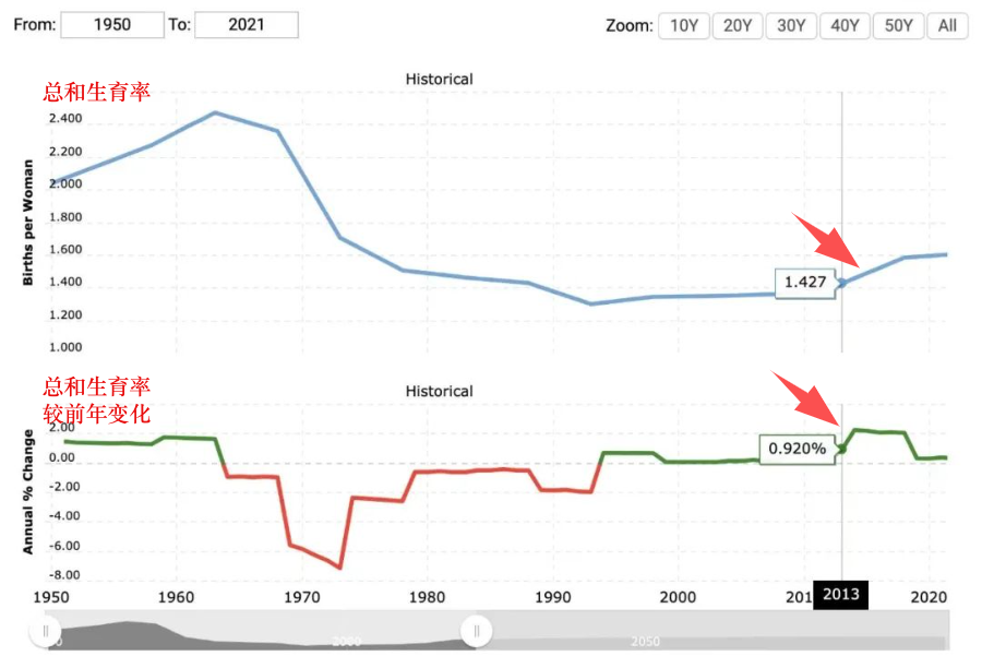 在这一大波配套政策的刺激下,德国的生育率再次被成功刺激,总和生育率和其增长率都明显向上抬头。