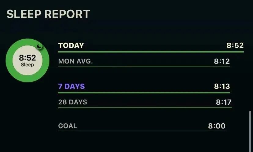 我每天的工作时间满打满算也就是8-9小时,基本每晚都要睡足8小时,有图有真相。