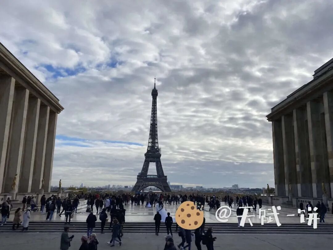 铁塔是巴黎的地标建筑,在没有很多高楼的市区,很多地方抬头就能看到它。