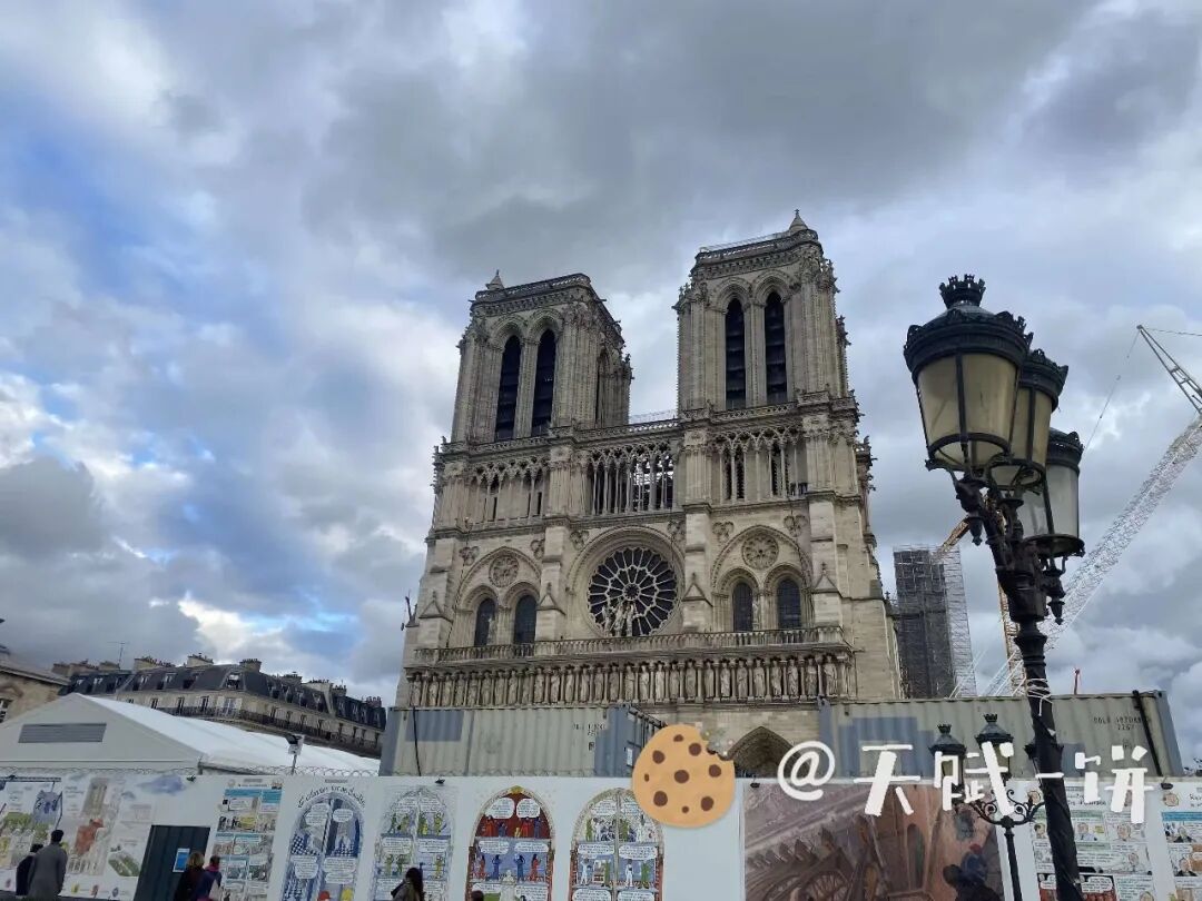 塞纳河中央的巴黎圣母院,火灾后至今还没有对外开放,前面看还好,但转到侧面,全是铁架子支棱着,据说修复要到2030年。