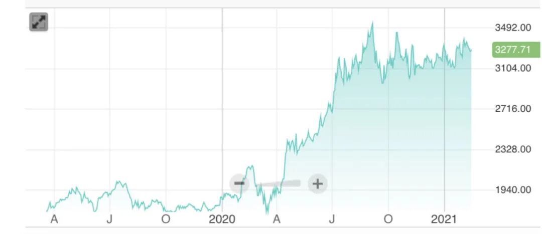 亚马逊股票在2019年已经达到1800美元高点,这不说明任何问题,它完全可能有潜力继续上升,但是在2020一年里涨幅超过78%,这种上升是“必然”的吗?