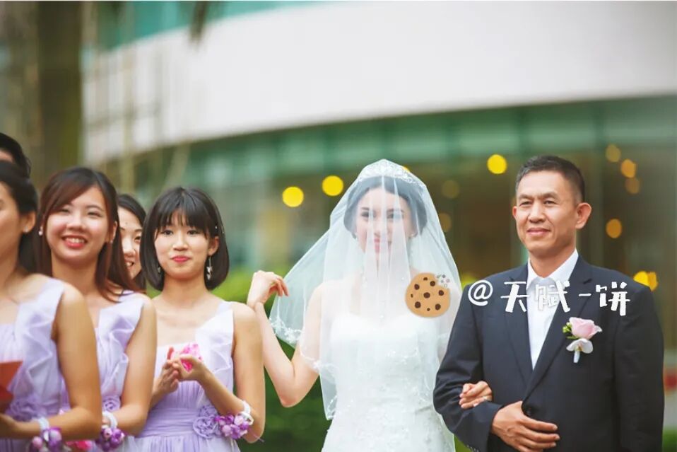 有一个环节是,新郎说一段深情款款的话,边说走向新娘,从我爸手里接过我的手。