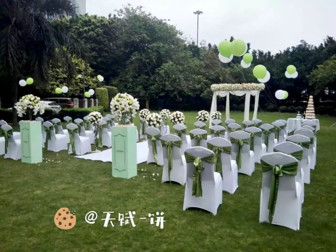 这时候我收到婚礼策划小姐姐的消息,我们开始布置现场了,希望待会不下雨。