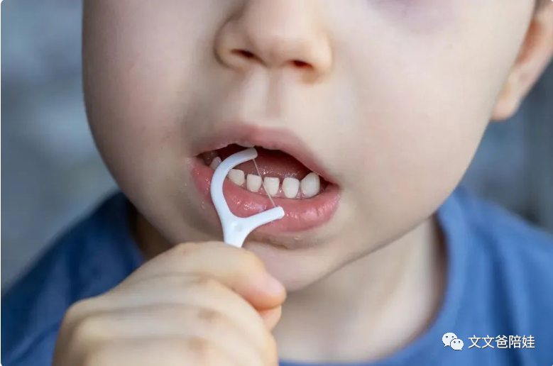 另外,一日三餐之后,要教会孩子使用牙线棒,来清理牙缝间的食物残渣。