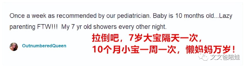 有人则认为一周一次,还有自称为“懒妈妈”的,家有俩宝,7岁大宝隔天洗一次;10个月小宝一周洗一次。