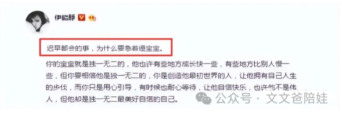 正如明星辣妈伊能静所说,孩子迟早都会的事儿,为什么那么着急呢?“3岁分床、5岁分房”只是一个建议,每个孩子都是独一无二的,并不需要一味的去遵循那个标准。