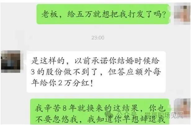 在最近的一个职场帖子中,讲述了这样一个故事:一个员工在公司工作了8年时间,是公司的元老级人物。在公司创业之初,老板为了笼络员工,承诺他结婚时会给他分红。这名员工为了回报老板,工作非常努力拼搏。8年后,公司发展壮大,员工终于要结婚了。然而老板只给了他5万红包,而之前承诺的分红毫无下文。员工愤怒之下,带走客户辞职,使老板损失惨重。