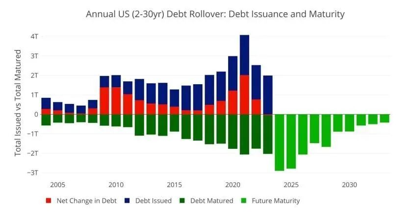 很明显,这将导致美国财政部不得不在更短的时间内展期出去更多的高利率债务,但现在,这个问题进一步复杂化的是,今年将是创纪录的一年,约2.9万亿美元的美债票据需要展期,但近期美债无论是在包括中国在内的全球央行的减持趋势上,美国国债流动性萎缩还是央行增持黄金储备的趋势上都正在强调投资者在远离或减少购买美债。