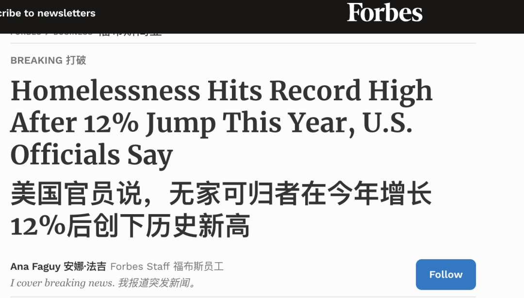 报告表明,大部分联邦债务可归因于68万亿美元的医疗保险承诺和48万亿美元的社会保障,但美国当局并没有拨出任何资金来资助这些承诺,这在美国联邦报告显示2023年美国无家可归人数达到2008年金融危机以来的最高水平就是最生动的例证。