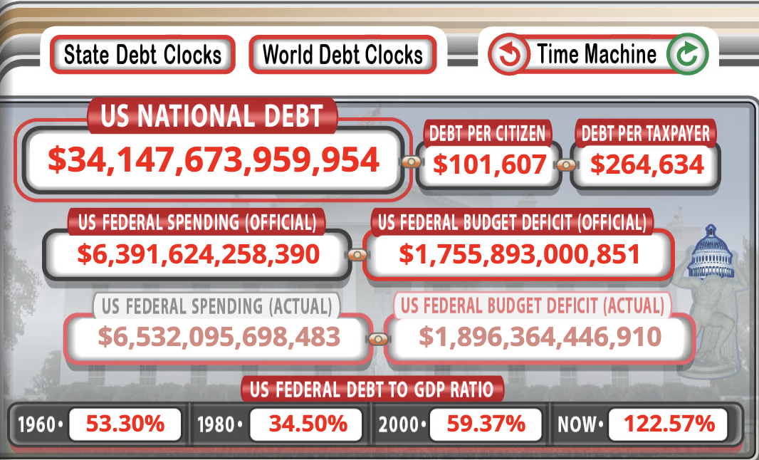 目前,美国联邦乃至美国民众都面临着严重的债务问题,根据最新统计,截至1月30日,美国未偿公共债务总额已经突破34万亿美元,这占国家GDP的123%,据高盛观察,目前,每新增一万亿美元债务所需的时间已从最早的6年,缩短到如今的三个月时间,更糟糕的是,这座债务雪球大山只会越来越大。最新的美国财政预算预计未来几年每年赤字将超过1.5万亿美元,总计占GDP的6%至7%。