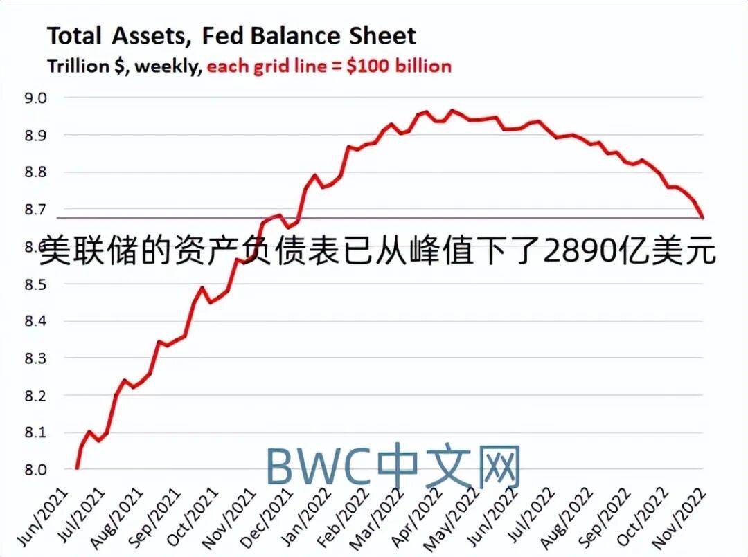 就在美联储拧紧美元水龙头,开启半个世纪以来最激进的加息进程中,美联储的缩表也“鹰击长空”。事情的最新进展是,美联储11月3日公布的最新资产负债表显示,截至11月2日的余额已经比10月5日下降了820亿美元,至8.68万亿美元,为2021年12月8日以来的最低水平。并且已经从峰值下了2890亿美元。