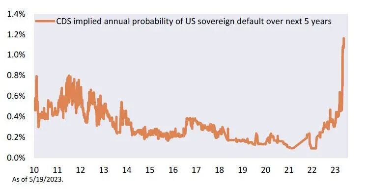 汇丰在5月22日发表的报告中认为,美国债务上限危机在历史上频繁发生,市场普遍认为,美国债务上限谈判最终将达成协议,但这一次可能和前两次出现的技术性违约不一样,因为,此次短期违约的预期综合利益超过了违约后的经济成本,那么违约风险或将超出投资者的预期。