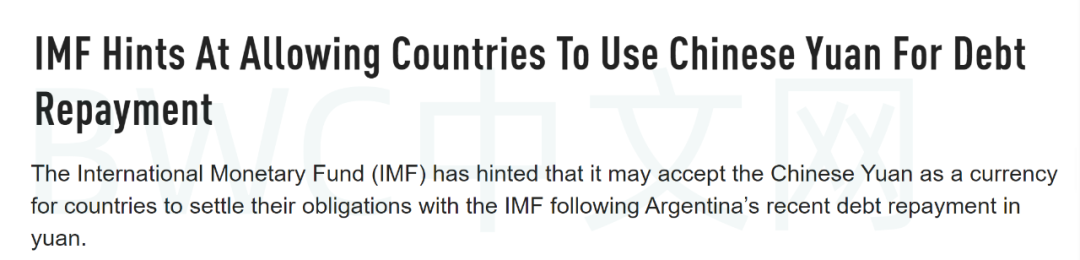 而事情的另一个新进展是,就在印度官方承认,该国已用人民币交易石油后,美国金融分析机构零对冲7月18日的消息显示,国际货币基金组织暗示,允许各国使用人民币偿还其债务。而在此之前,阿根廷已经用人民币偿还了该组织部分债务。