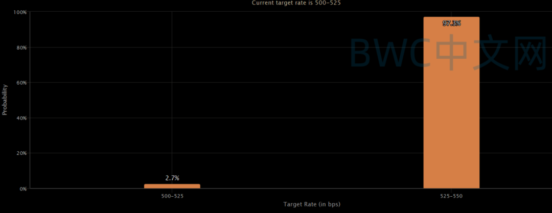 事情的最新变化是,芝商所的美联储观察工具7月18日预测,美联储7月再次加息25个基点,开启第11次加息,使联邦基准利率达到5.25%-5.5%的概率已经高达近98%,而在三天前这一概率还停留在93%。