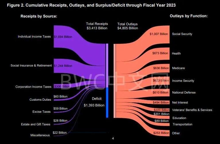 而根据美国财政部的数据,截至 6 月底未偿还债务总额的加权平均利率为2.76 %,这是自 2012 年 1 月以来从未超过的水平。预计美国32.5万亿美元债务总额的利息支付将在12个月内达到近1.3万亿美元,有可能使债务利息成为美国政府最大的单一支出,并超过社会保障。