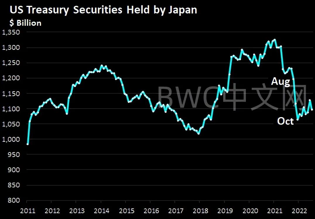就以美国的传统盟友日本为例,作为美债最大的持有国,日本5月抛售304亿美债,成为当月美国国债最大的国际做空者,持仓降至1.0968万亿美元,相比于2021年曾一度达到1.3286万亿美元峰值,日本已累计净抛售2318亿美元的美国国债,累计净抛售比例约17.5%。