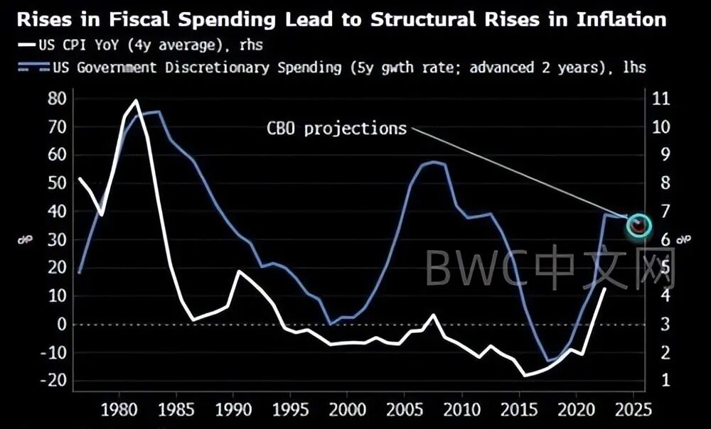 与此同时,美元疲软又加剧了通货膨胀。下图显示可自由支配支出的大幅增加导致价格增长的结构性上涨。