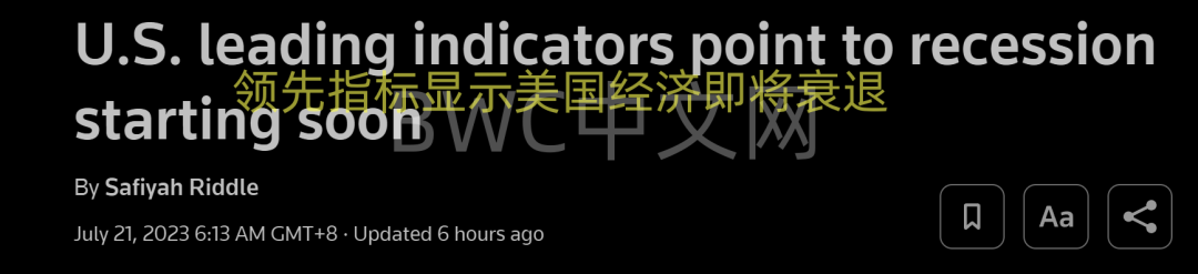 “总体来说,6 月的数据表明未来几个月美国经济活动将继续减速,”世界大型企业联合会商业周期指标高级经理扎宾斯卡-拉莫尼卡( Justyna Zabinska-La Monica )在一份声明中表示。美国经济从当前第三季度到2024年第一季度可能陷入衰退。物价上涨、货币政策收紧、信贷更难等因素都将进一步抑制美国的经济增长。同时,伴随美国的银行业危机加剧,美国债务危机的风险也正日益加大。