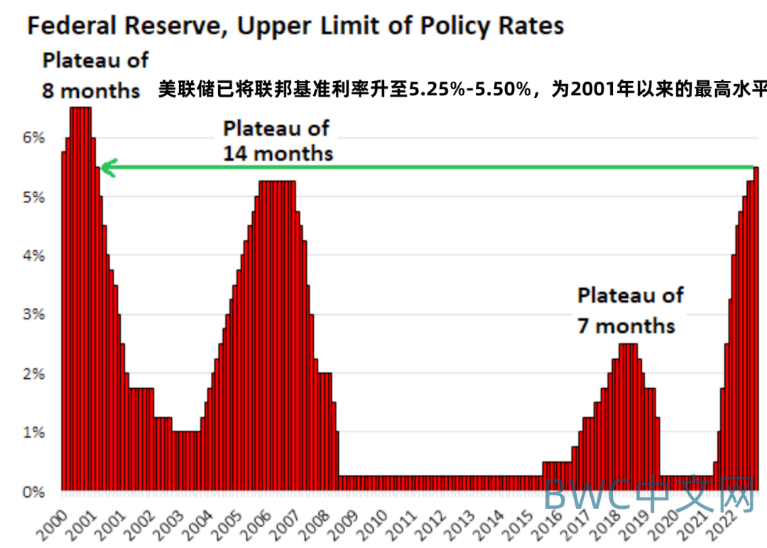7月28日这周,如市场普遍预期,美联储再次加息25 个基点,使联邦基准利率达到5.25%-5.50%,为2001年以来的最高水平。自去年3月以来,美联储已在16个月内11次,共加息525个基点。这也是自1980年以来最快的加息周期,以应对美国40年来最严重的通胀。