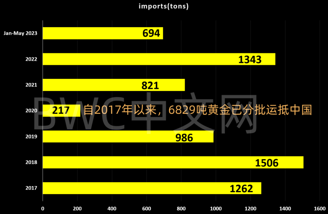 而在市场进口层面,世界黄金协会7月发布的最新报告显示,该报告延后两个月惯例,今年1-5月,中国共进口694吨黄金。而通过下图,可以进一步看到,自2017年以来,至少高达6829吨黄金已经从美欧市场分批运抵中国。