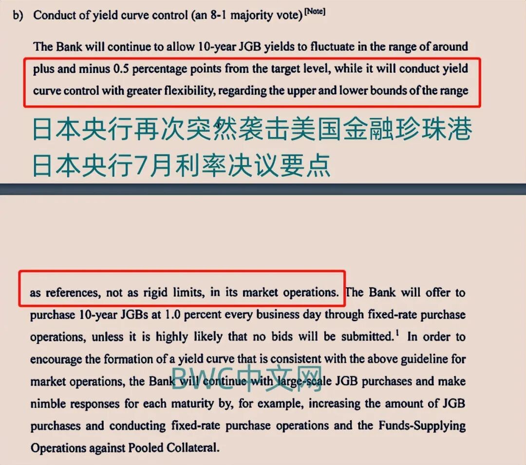 果不其然,日本出手了,日本央行在亚洲时间7月28日上午举行的最新利率会议上出人意料的宣布,把关键短期利率维持在-0.1%不变,但允许10年期国债利率在正负0.5%区间波动,以更大的灵活性引导YCC政策,并以区间的上下限作为参考,而非严格的限制,并将在固定利率操作中以1.0%的利率购买10年期日本国债,而不是之前的0.5%,这可能意味着日本央行新的上限变成了1%,出乎华尔街的预料之外。